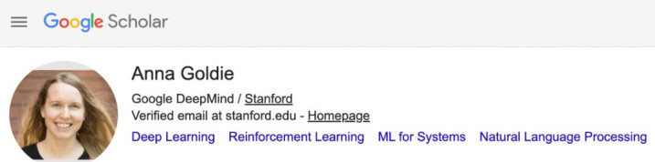 Anna Goldie 拥有斯坦福自然语言处理博士学位,之前担任 Google DeepMind 的高级研究科学家,负责 Gemini 的 LLM/RL 和工具使用研究,也是谷歌大脑系统机器学习团队的联合创始人。再之前,她曾在 Anthropic 公司从事 Claude/RL 和检索增强工作。